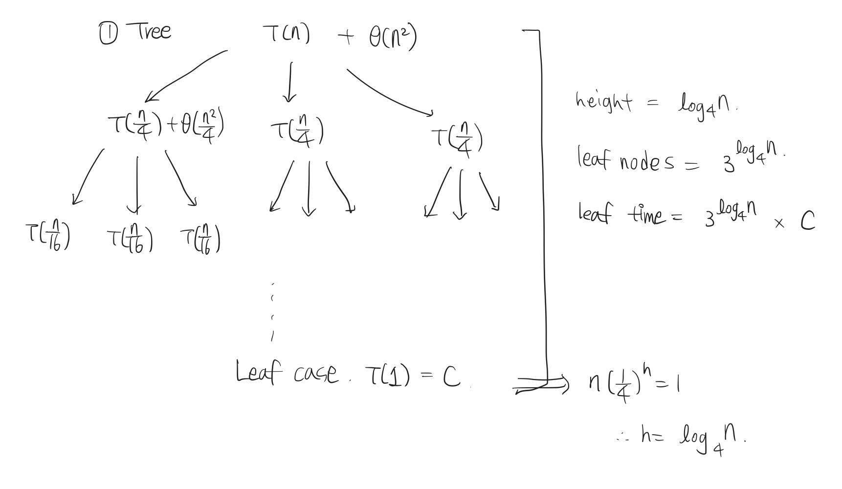 Recursion tree를 그리고 time complexity를 계산하는 방법입니다.