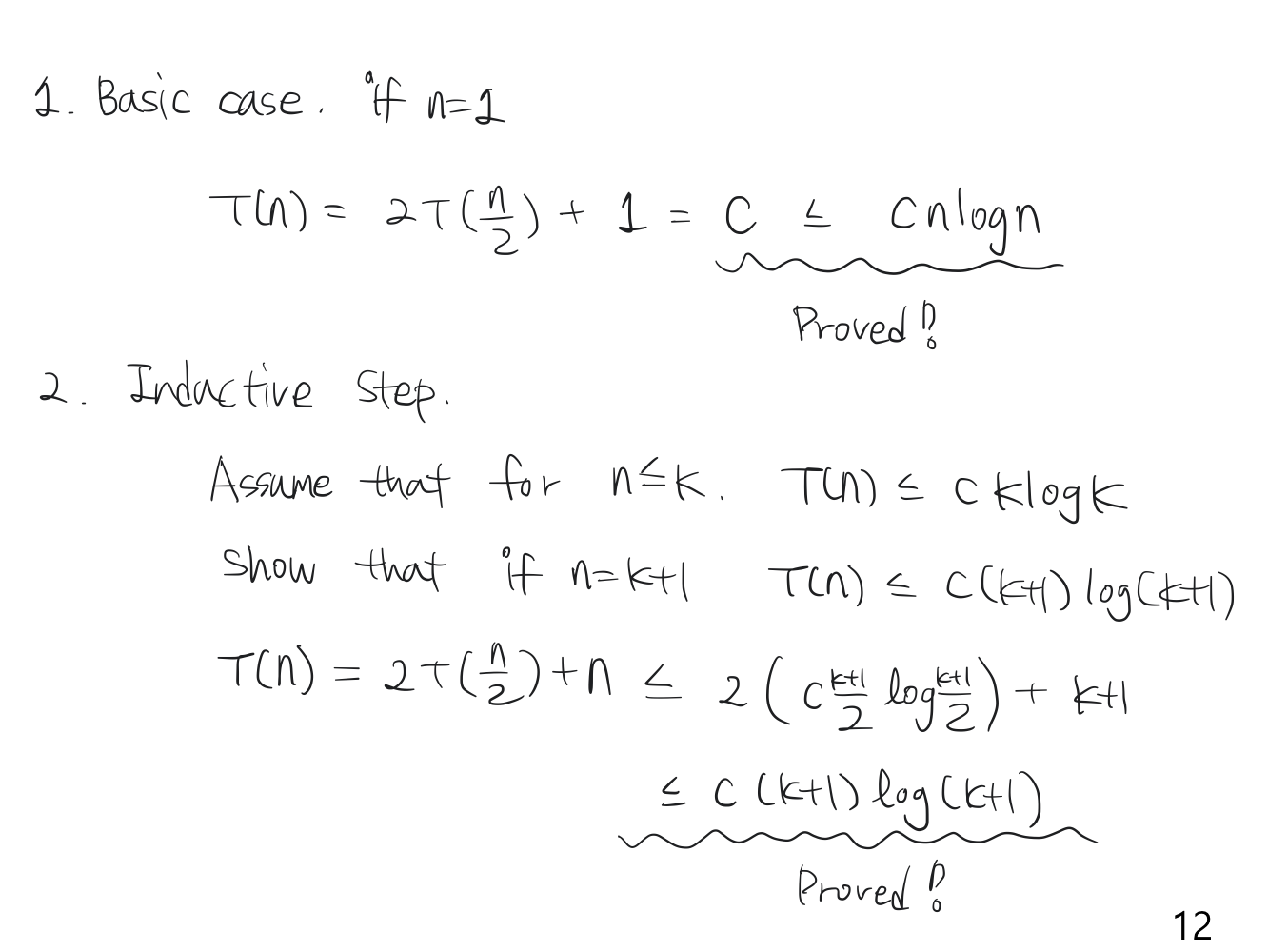 가정을 하는 방법입니다. 알고리즘이 대충 O(logn)이라고 가정하고 mathematical induction을 이용해 이를 증명합니다.
