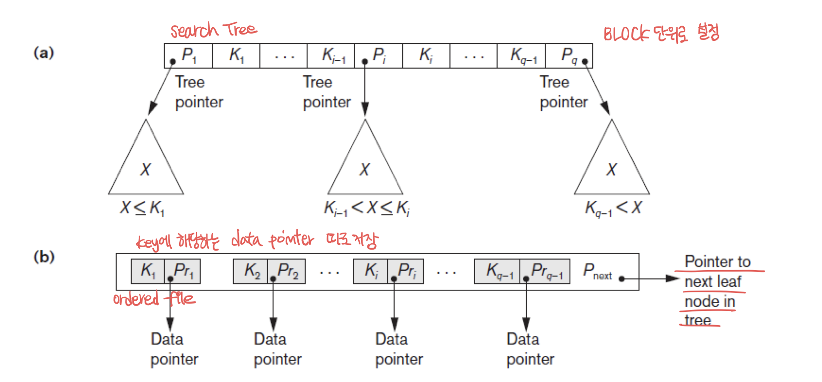 Primary Key, K(i) + Pointer to disk block, P(i)
