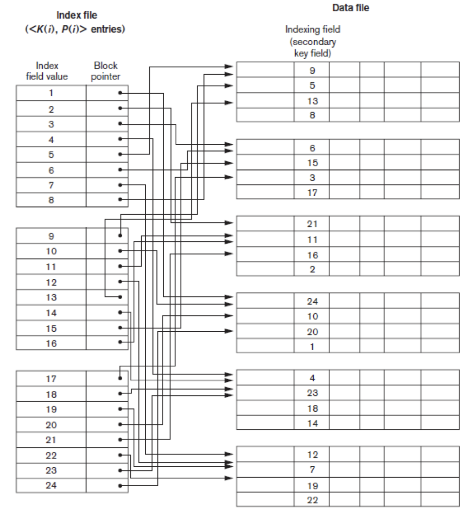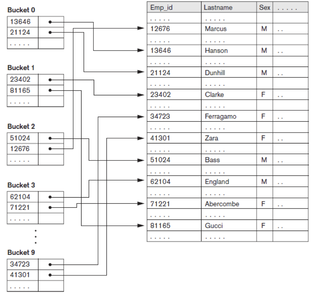 Secondary structure이다. Primary data file organization을 이용하기 보다, hashing을 이용해 데이터마다 바로 접근하는 방법이다. (Key, Pointer to Record), (Key, Pointer to Block)으로 사용할 수 있다.