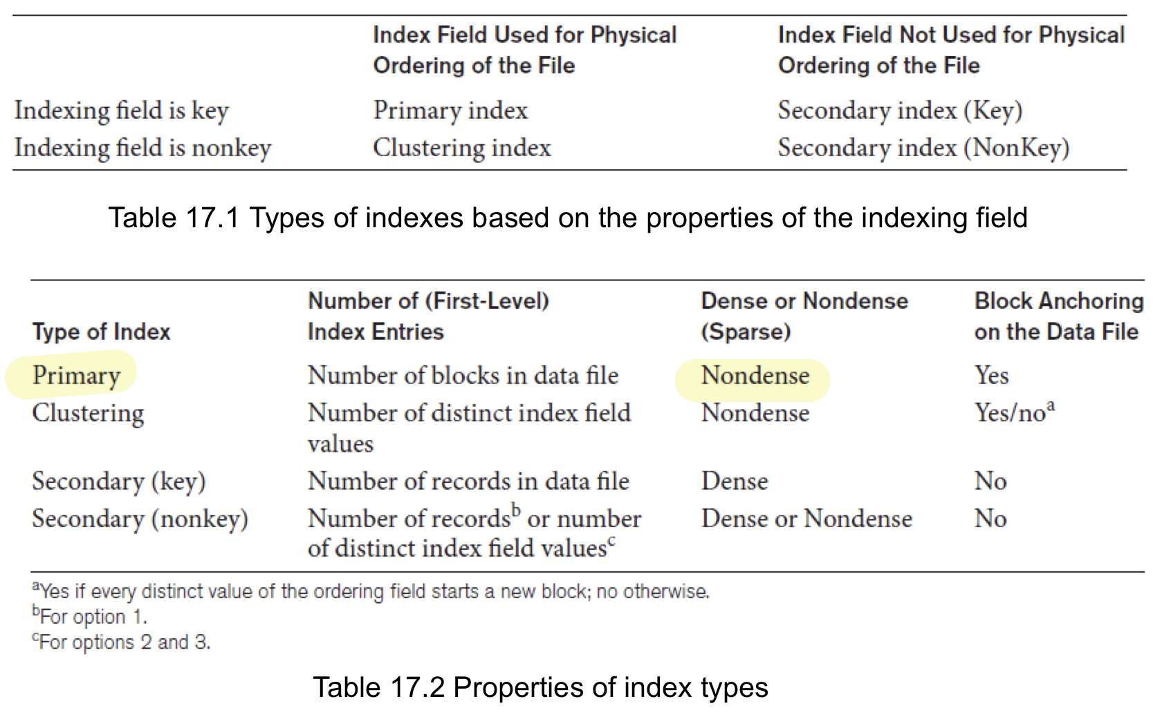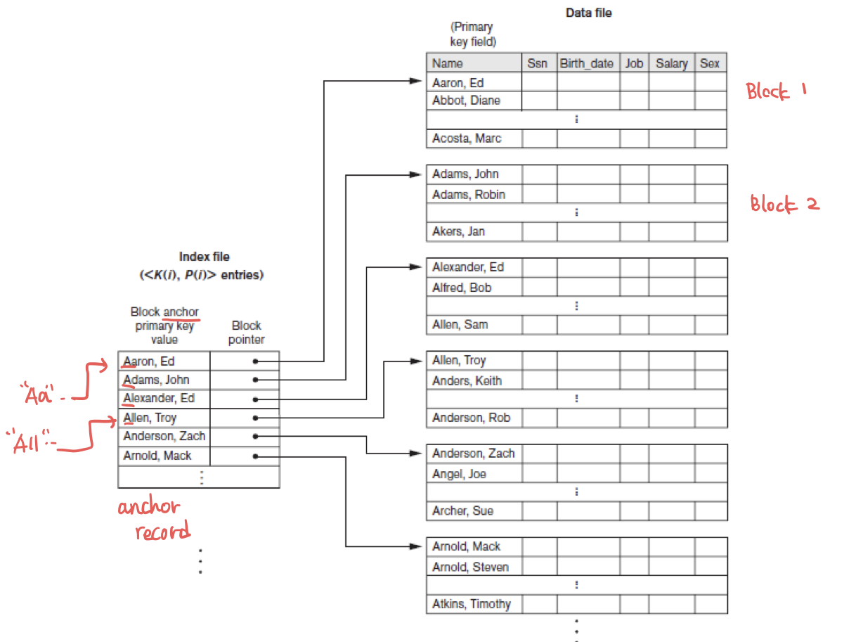 Index는 보통 자주 접근하는 파일들의 데이터 접근 속도를 높이기 위해 사용한다. 대부분의 index는 ordered files에 대해 구현되어 있다. 주로 Tree 구조를 사용한다.